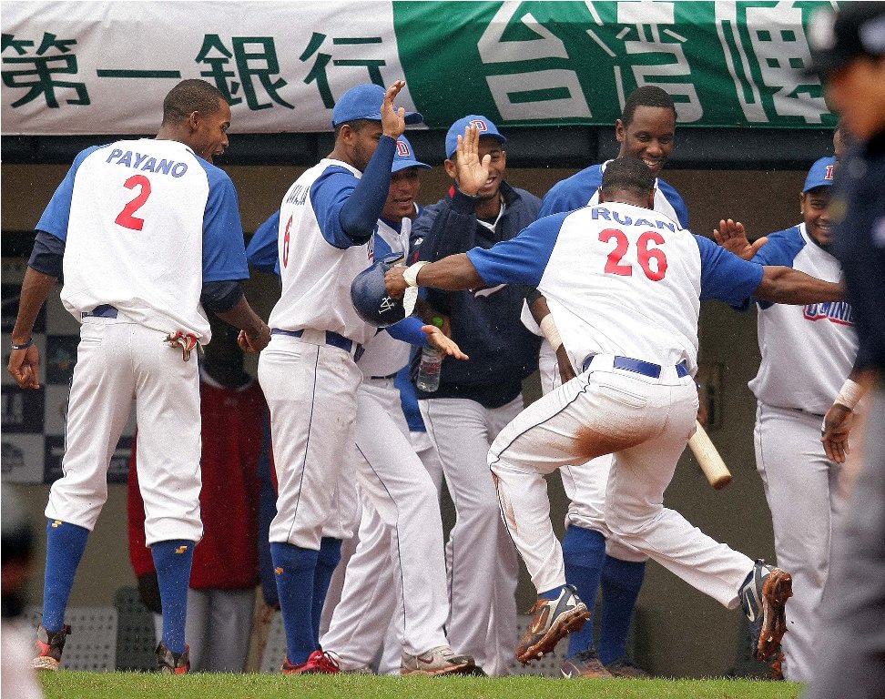 20121130冬季聯盟G9-多明尼加魯安奔回本壘得分後興奮得在休息區前跳舞慶賀